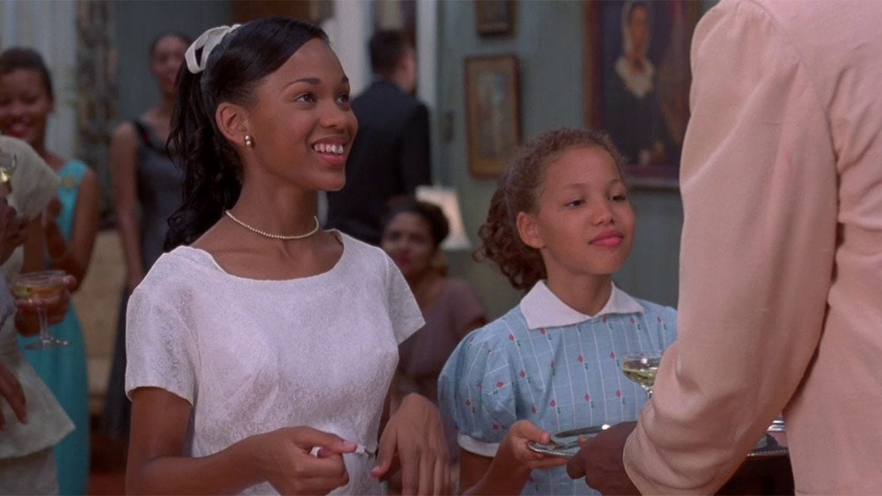 Eve Batiste — played by 10-year-old Jurnee Smollett in her second ever film, and first lead role — is the middle child of Louise, the town doctor and an absolute charmer of a man (Samuel Jackson), and Roz (Lynn Whitfield), the most beautiful woman he’s ever seen. The story takes place in early summer, and will be over when the season ends, and with a party at the Batiste house; music blaring, champagne flowing, sweat making every man’s shirt see-through and every woman’s hair threatening to collapse. Eve, bothered by the attention her older sister Cisely (Meagan Good, originally cast as Eve years earlier when the movie first started taking shape) is getting, retreats to the barn out back and falls asleep. She awakens to the sounds of people stumbling in, and to the sight of her father with his hands all over and around someone who is not his wife. With the facade cracked, and without the authority and believability of adulthood, Eve must do something, or nothing, with this terrible secret that has been forced upon her.