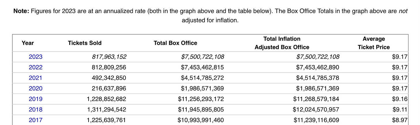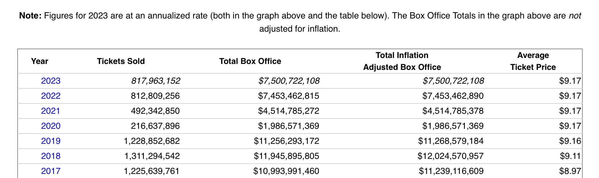 Back in 2017, when the service was bought-out and membership was thriving, the movie-going world looked much like it did for all of the 2010’s: packed with adaptations, sequels, and comic book movies. The ‘Marvel Cinematic Universe’ was nearing completion of its ten-year story arc, and fans were eating it up. Those movies felt like important cultural touchstones, at least business-wise and water-cooler-wise. Over 1.2 billion movie tickets were sold that year, a slight dip from the previous two years, but not out of line with how the business had been doing, or would do in the next couple of pre-pandemic years.